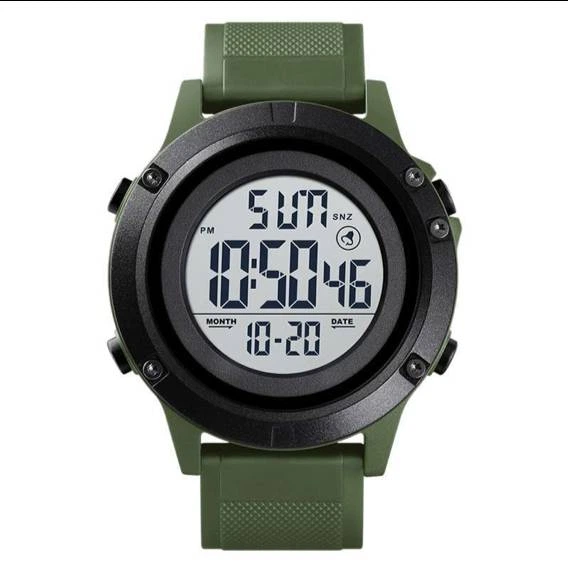 Чоловічий наручний годинник з яскравим підсвічуванням Skmei 1508 Чорний (чорний екран) зелений ремінь