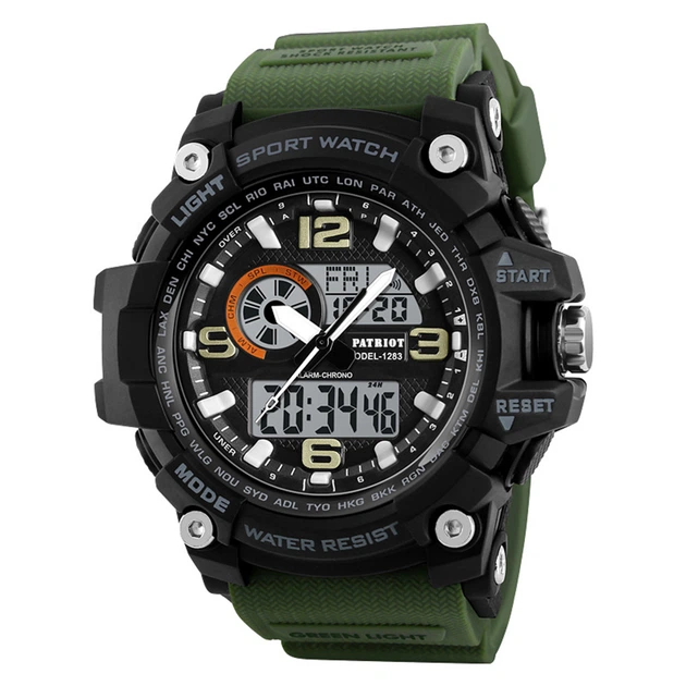 Наручний годинник Patriot 012AGDPS ДПС Чорні з зеленим + Коробка Store