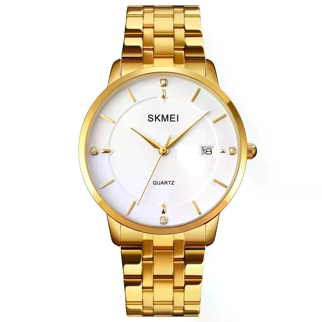 Чоловічий класичний годинник Skmei 1801S золоті, на браслеті