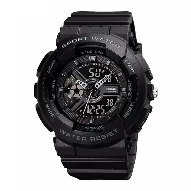 Чоловічий наручний електронний годинник Skmei 1683 (Чорний з білим циферблатом) 1