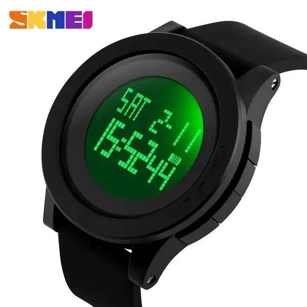 Годинник Skmei 1142BK Black | Спортивний цифровий годинник з LED-дисплеєм, водозахистом та силіконовим ремінцем (sk1142bk)