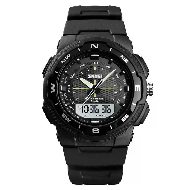 Чоловічий спортивний наручний годинник Skmei 1454 (Чорний з білим табло)