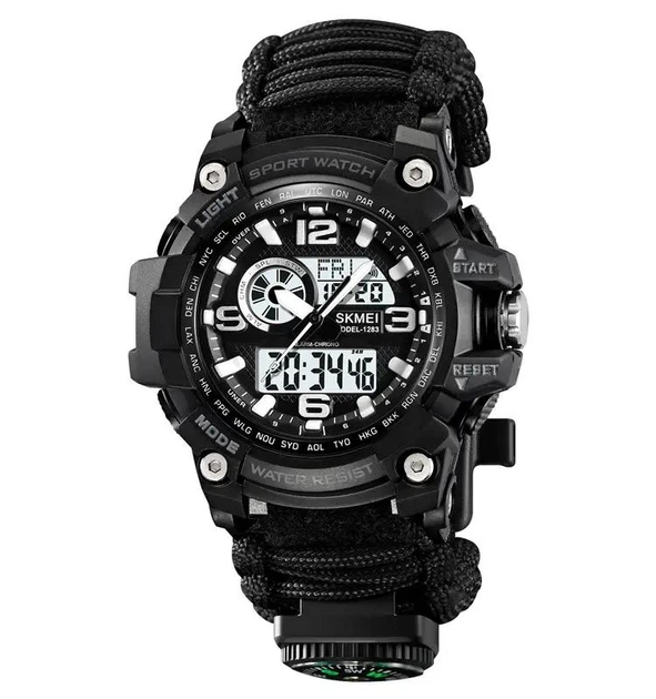 Годинник наручний чоловічий спортивний Skmei 1283 з паракордовим ремінцем (Чорний)