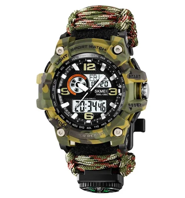 Годинник наручний чоловічий спортивний Skmei 1283 з паракордовим ремінцем (Камуфляж)