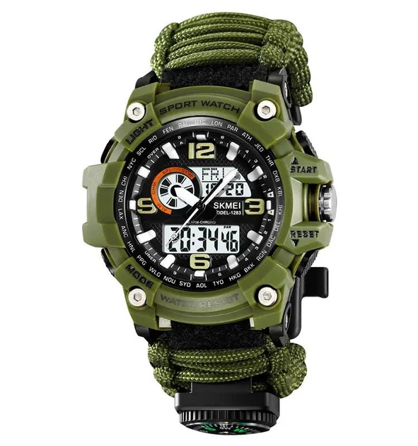 Годинник наручний чоловічий спортивний Skmei 1283 з паракордовим ремінцем (Зелений)