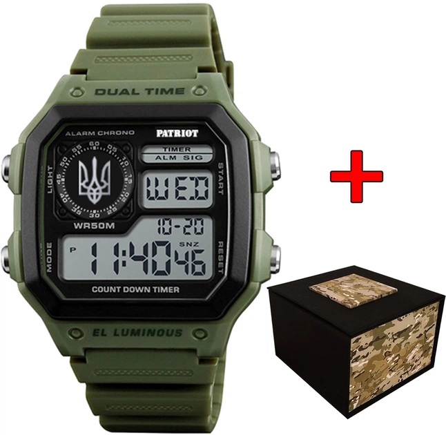 Часи наручні Patriot 010AGUASI Тризуб срібло Зелені + Коробка