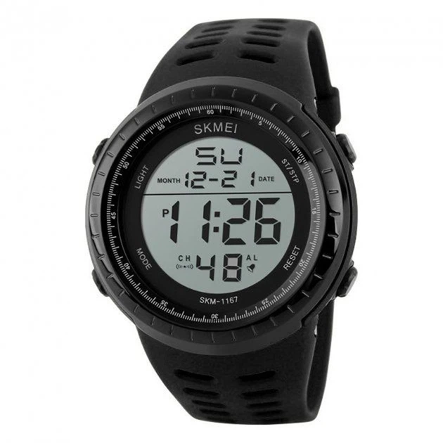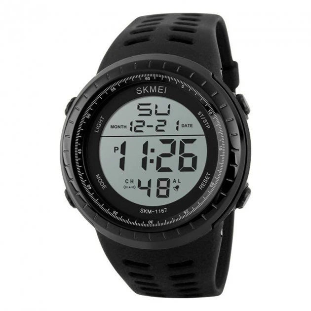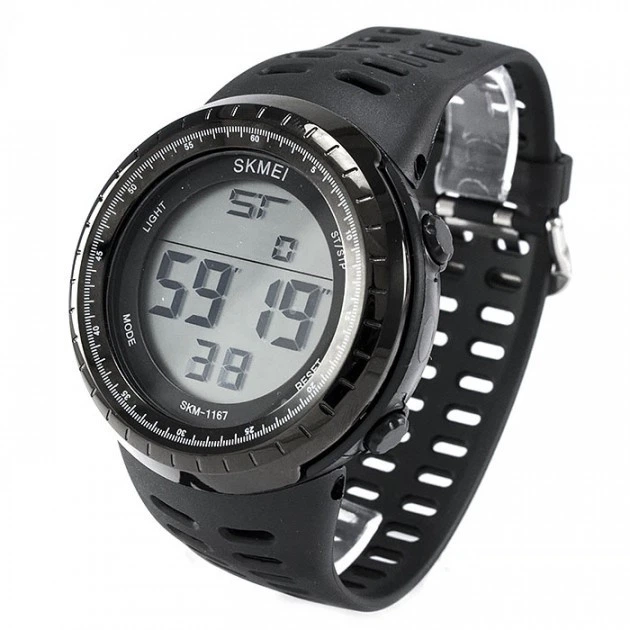 Годинник Skmei 1167BK Black чоловічий спортивний електронний годинник у чорному корпусі (sk1167bk)