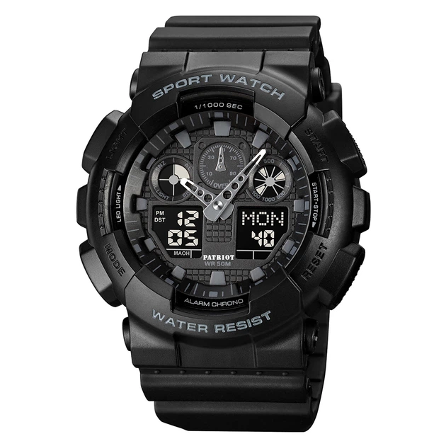 Годинники спортивні Patriot 007BK Black кварцові для чоловіків з будильником та хронографом чорні (546965)