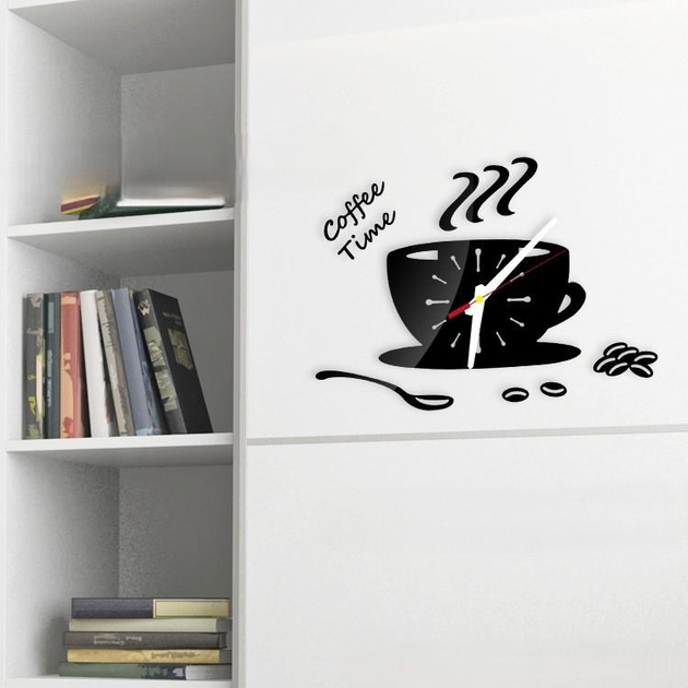 Настінні годинники 3D кварцові дзеркальні чорні час кави 21*13 8950