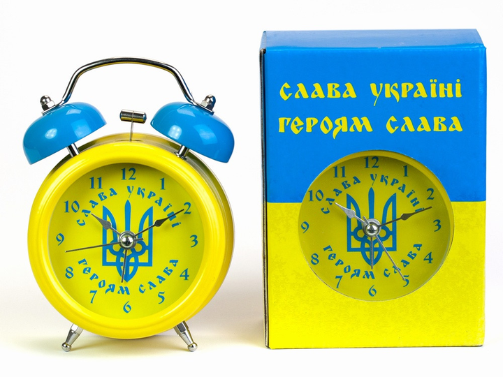 Годинник настільні з будильником Ukraine Слава Україні! 12х8,5х5 см Жовтий Блакитний (19153)