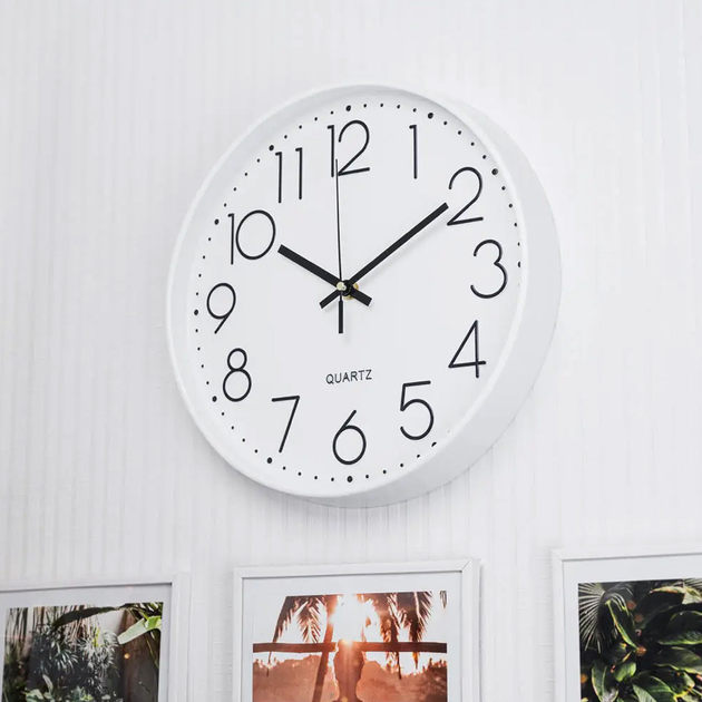 Настінний годинник безшумний Білий (білий обідок)