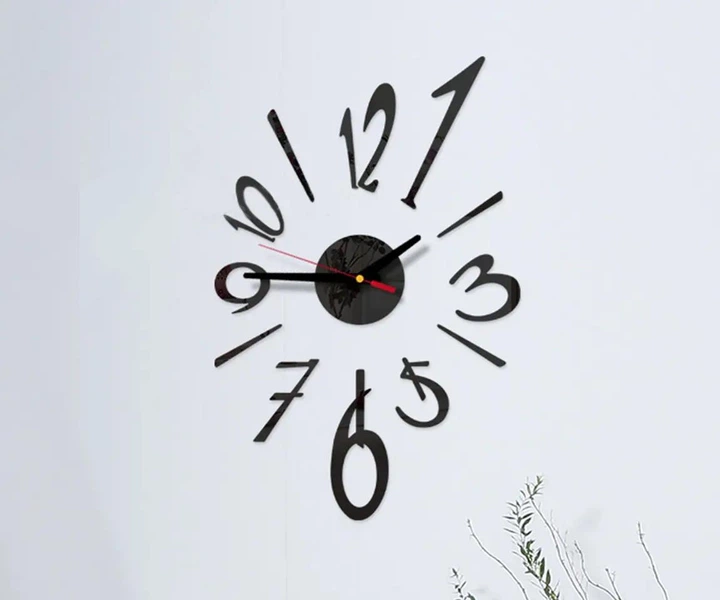 Настінний безкаркасний 3D годинник Diy Pulse із дзеркальним ефектом самоклейний 40 см Чорний