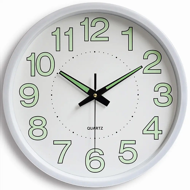 Настінний годинник світиться круглий кварцовий тихий Білий (білий обідок)