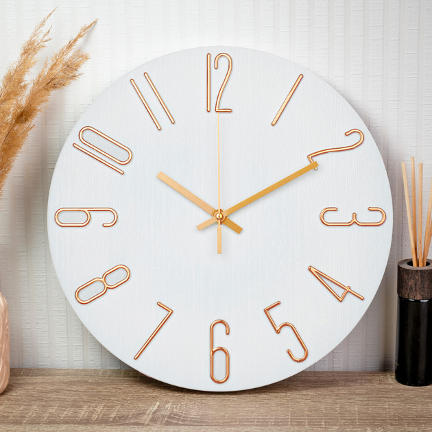 Годинник настінний безшумний Losso Premium MODERN CM-30 білий (золоті цифри)