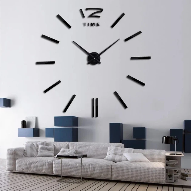 Настінний годинник DIY 3D "TimeLine" чорний - Великий безкаркасний 3Д годинник 60-130 см, самоклеячий (101121)