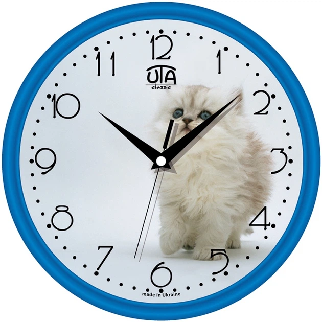 Настінний годинник UTA 01 BL 15 пухнасте кошеня