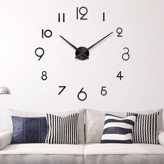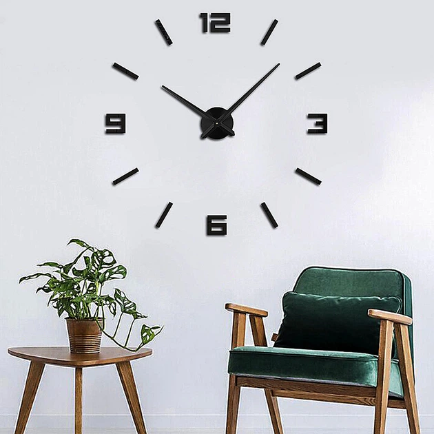 Настінний годинник DIY 3D "Instant" чорний - Великий безкаркасний 3Д годинник 60-130 см, самоклеячий (101123)