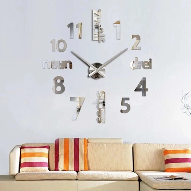 Настінний годинник DIY 3D "Revive" срібло - Великий безкаркасний 3Д годинник 60-130 см, самоклеячий (1011167)
