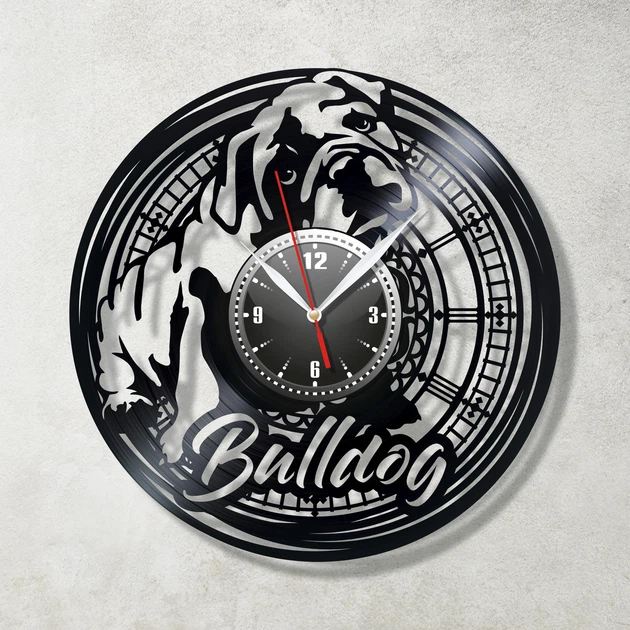 Настінні годинники Вінілова пластинка Англійський Бульдог 30 см 1274/1 Чорний
