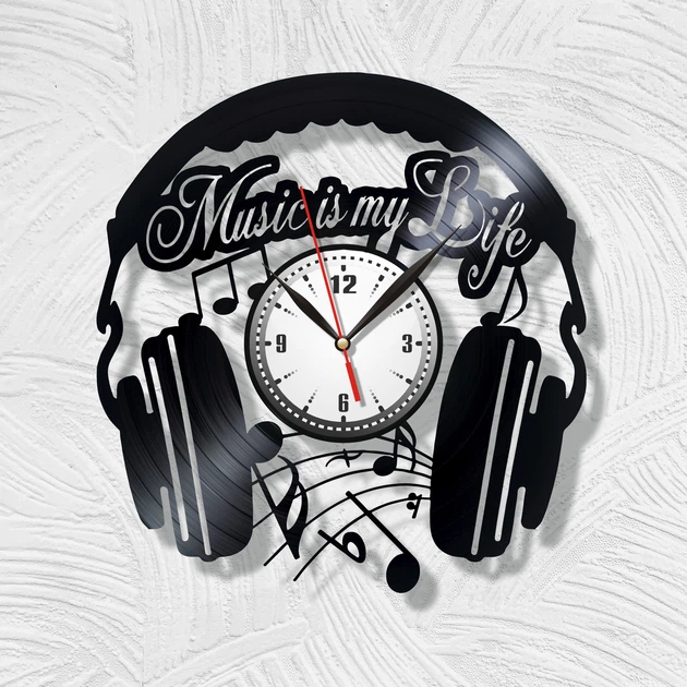 Настінні годинники Вінілова пластинка Музика Навушники 30 см 1113/3 Чорний