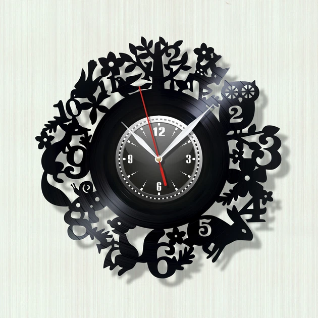Настінні годинники Вінілова пластинка Тварини 30 см 802/1 Чорний