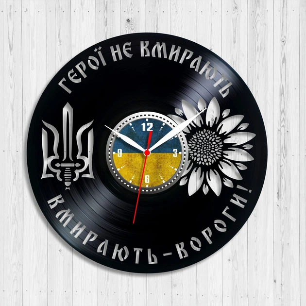 Годинники настінні Вінілова пластинка Годинники України Герої не вмирають вмирають вороги 30 см Чорний 1421/5