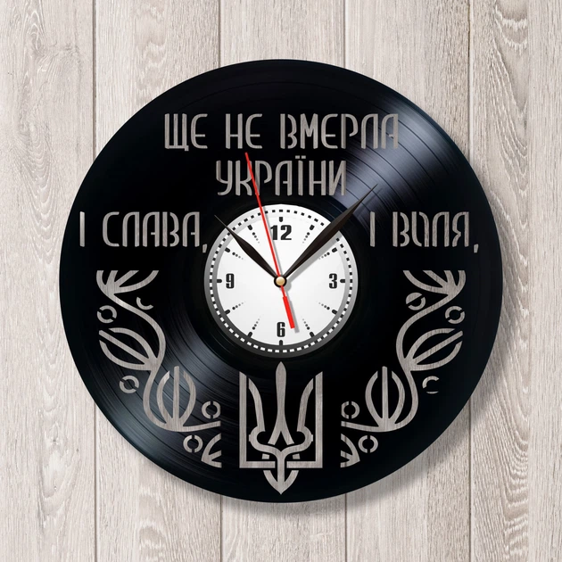 Годинник настінний Вінілова платівка Гімн України 30 см Чорний1462/1