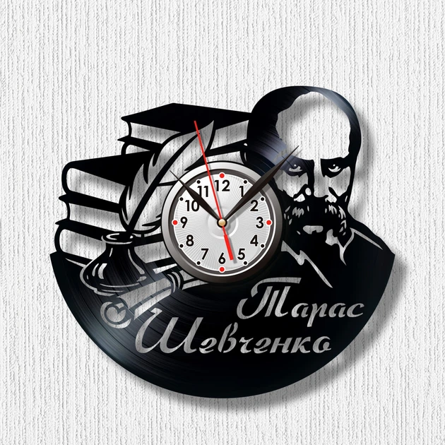 Годинники настінні Вінілова платівка Тарас Шевченко 30 см Чорний 1480/3
