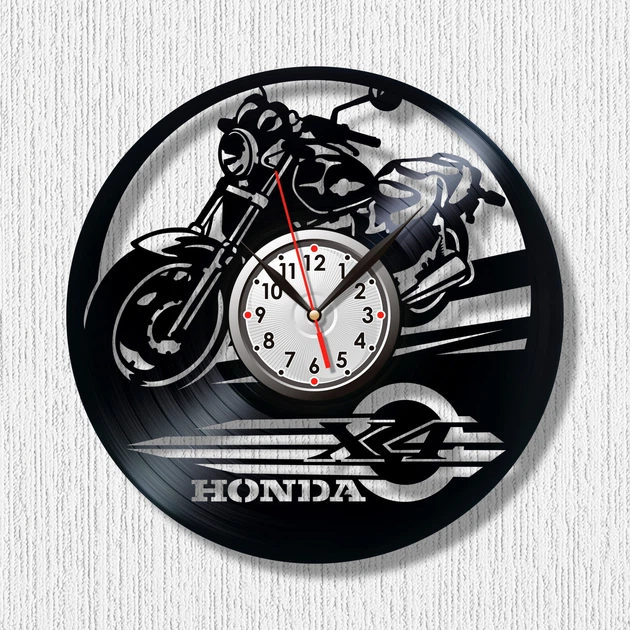 Годинник настінний Вінілова платівка Мотоцикл Honda X4 30 см Чорний 1577/3