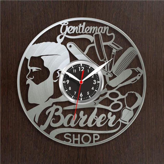 Настінні годинники Вінілова платівка Barber Shop 30 см Сріблястий 625/1