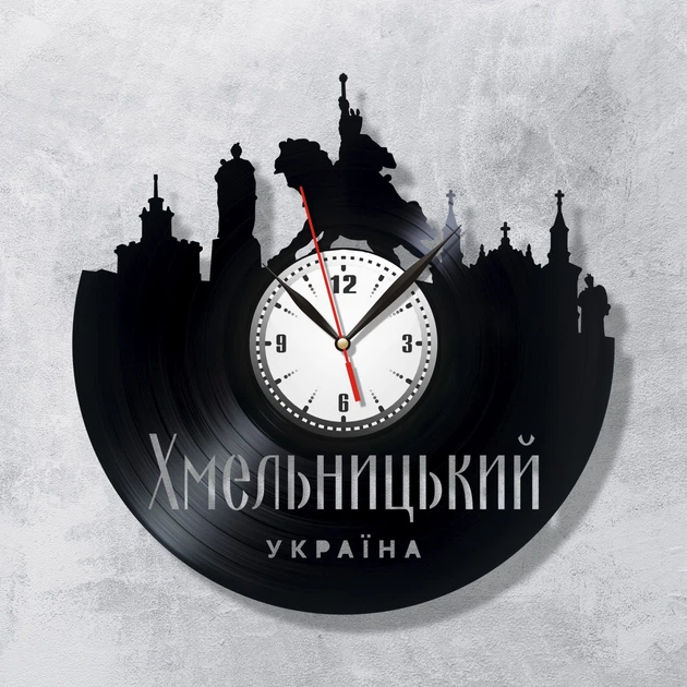 Годинник настінний Вінілова платівка Місто Хмельницький 30 см Чорний 2085/2