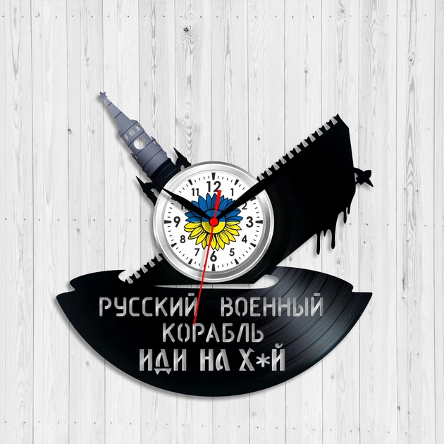 Годинники настінні Вінілова пластинка Російський військовий жолоб іди на 30 см Чорний 1415/1