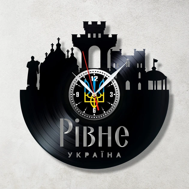 Годинник настінний Вінілова платівка Місто Рівне 30 см Чорний 1490/5
