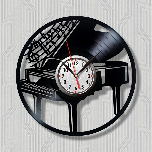 Годинник настінний Вінілова платівка Фортепіано 30 см Чорний 10038/3