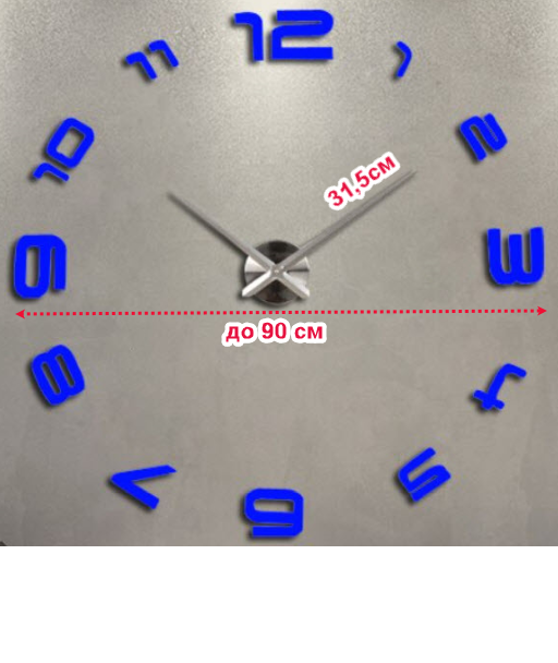 Годинник настінний до 90см Арабські 3D цифри сині Б230-37'