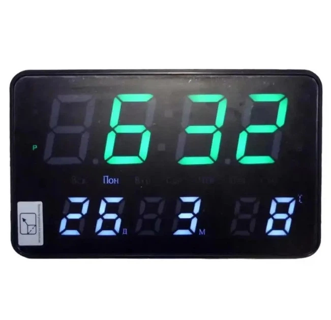 Годинники електронні настінні 2508 із зеленим підсвічуванням чорні 240х40х150мм (TB020912)