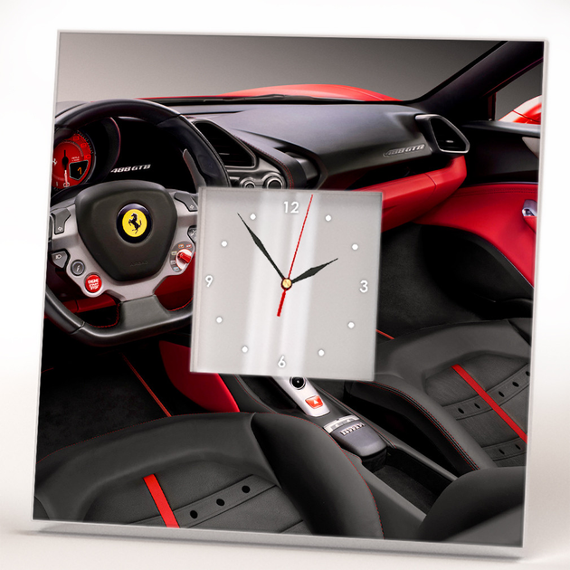 Супер стильний годинник для подарунка "Салон авто Феррарі. Ferrari" для водіїв та автолюбителів