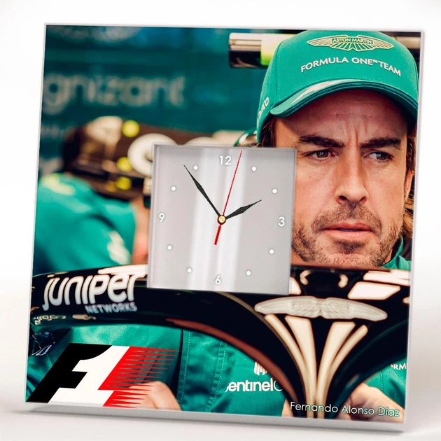 Настінний годинник «Фернандо Алонсо. Fernando Alonso. Формула 1. F1» подарунок для фанатів автоперегонів, прикраса спальні