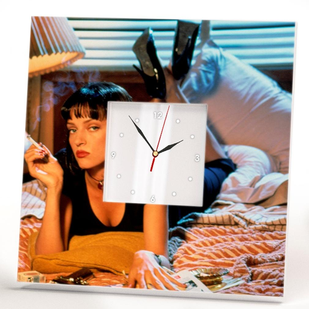 Годинник "Ума Турман. Кримінальне чтиво. Pulp Fiction" подарунок фанату кіно, для спальні, бару, клубу, клубу, кафе, в офіс