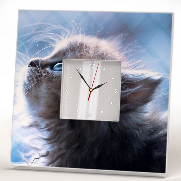 Годинник "Кошеня з блакитними очима" милий прикольний подарунок для любителів кішок, в дитячу або спальню