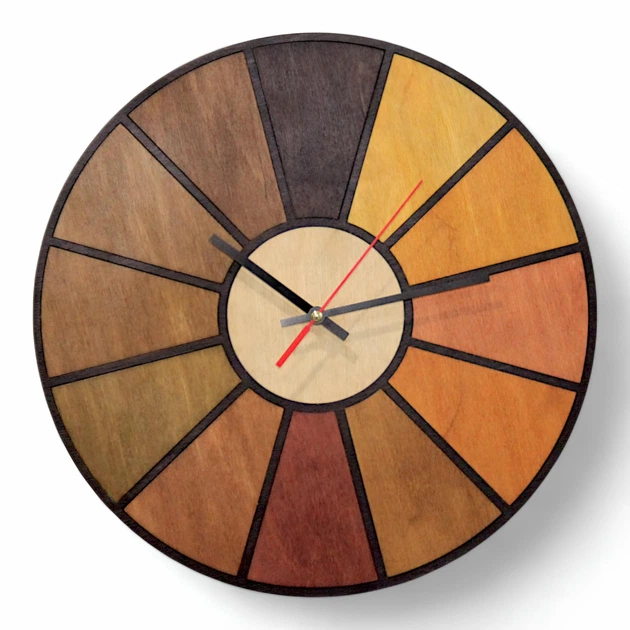 Настінний годинник WNINE WNC-002, дерев’яний 38 см, дизайнерський з палітрою відтінків, безшумний кварцовий механізм (AA), у