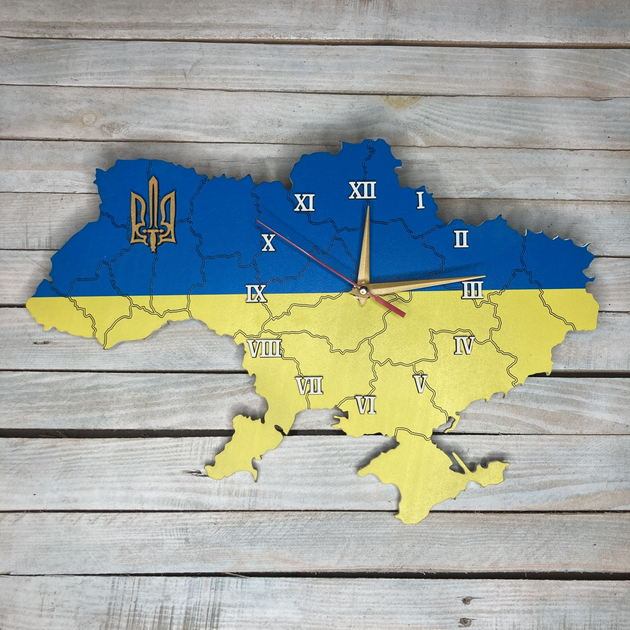 Годинник настінний у формі мапи України, годинник мапа України, годинник патріотичний HWD (A0581)