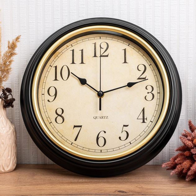 Настінні часи чорні із золотом 35см колекція Yoko Гранд Презент (1021291)
