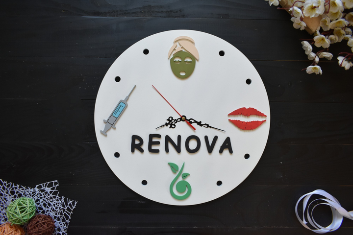 Настінний годинник з дерева косметологу з ім'ям на замовлення (ЧС0060-8)