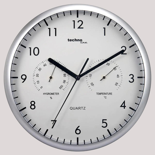 Годинник настінний Technoline білий кварцевий з термометром і гігрометром для дому і офісу