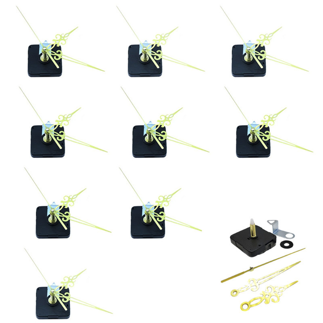 Часовий механізм 10 шт, безшумний, кварцовий, шток 28 мм, золоті стрілки, для настінних та саморобних годинників