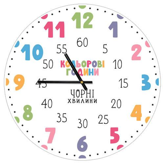 Часи настінні круглі, 36 см Кольорові години, чорні хвилини (для дітей)