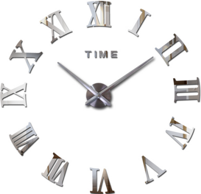Годинники настінні 3D Najlepsi Cas 130 см (Чехія) Римські срібні дзеркальні великі наклейки