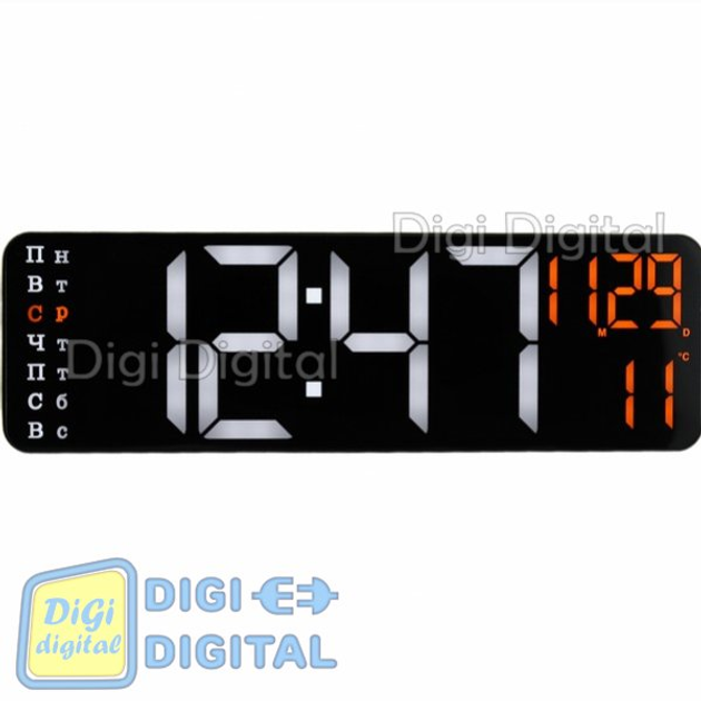 Настінний годинник будильник SM-601 від USB з термометром з пультом чорний корпус білі та помаранчеві цифри
