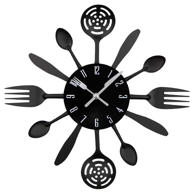Настінний годинник на кухню Spoons-forks кварцевий металевий 37 см Чорний